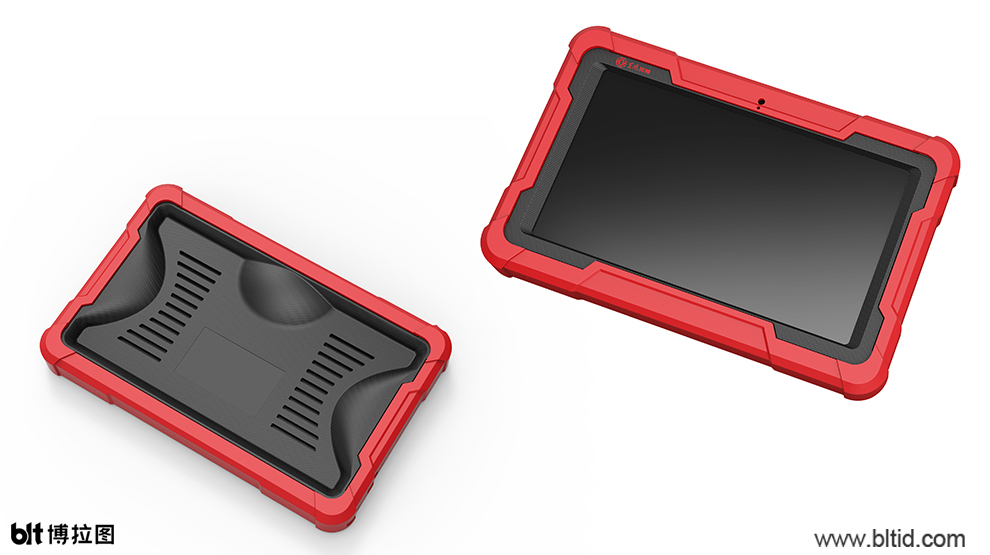 这款10寸工业平板,是博拉图为东风汽车设计的,使用场景有4S店、东风汽车自用,兼用两种不同的场景,博拉图创新团队经过了深思熟虑的规划,使用和美观达到一致。本着以操作者为研究核心,以安全性,人性化为目标。整体造型简洁,操作界面清晰,功能按键用红色着色排布,带有醒目效果。手持把手位置用软胶材质,加以网格质感,让操控者握感充实,掌控力强。背面外挂配件可折叠,拆卸,更具人性化。整体机型不乏汽车酷炫切面穿插,进一步彰显出专业可读性,同时加深了品牌识别性。