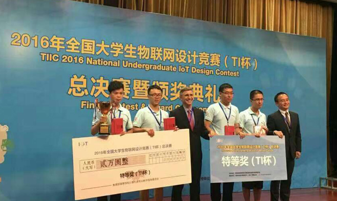 8月26日下午,2016年全国大学生物联网设计竞赛在西安交通大学落下帷幕,教育部高等学校计算机类专业教指委副主任傅育熙教授、德州仪器副总裁Peter Balyta博士、德州仪器亚太区大学计划总监王承宁博士、西安交通大学教务处副处长张俊斌等出席闭幕式并为获奖选手颁奖。闭幕式由组委会秘书长、上海交通大学王东教授主持。