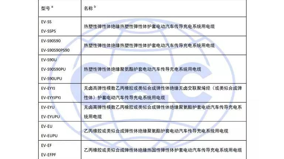 实施规则:CQC11-463426-2017《电动汽车传导充电系统用电缆性能安全认证规则》;