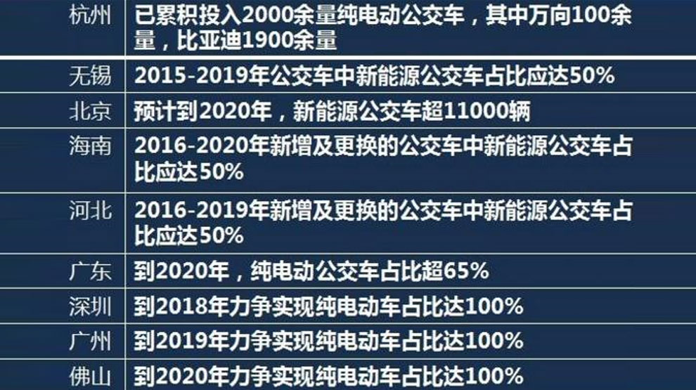 交通运输部运输服务司司长刘小明指出,在发展公交的同时,还要进一步优先发展新能源公交车,所以“十三五”城市公共交通发展规划纲要中明确提出,到2020年,在城市公共交通领域,新能源车要达到