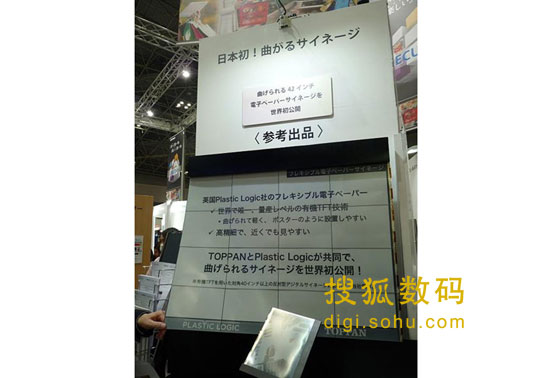 这种柔性电子纸的大小接近42英寸显示屏,在展会上被当作大型电子指示牌使用。它由16块10.7英寸的黑白电子纸所组合而成,分辨率达到1280x960。相比被限制在平面上的普通电子显示屏,这种柔性电子纸能够适应不同的表面。在未来的公共广告领域,这种技术可能会得到广泛使用。