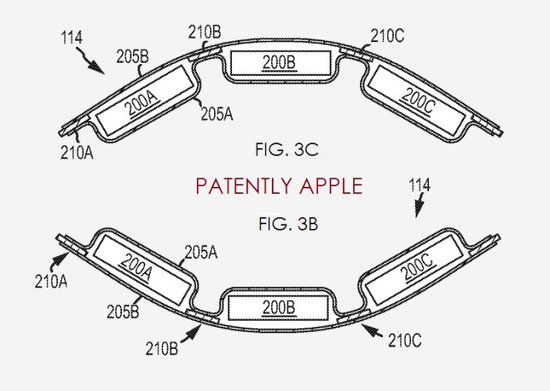 在专利申请书中,苹果指出柔性电池设计可以应用于许多电子产品,但苹果并没有明确指出是“手表”。如设计图所示,我们可以清楚地看到这个电池包与传说中的iWatch有着莫大的关系。