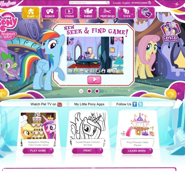 儿童可以认出自己喜欢的卡通形象,点击和按压这个卡通形象,孩子就能看到有这个卡通形象的视频。另外一个例子是My Little Pony 网站,导航上有箭头和人物形象。