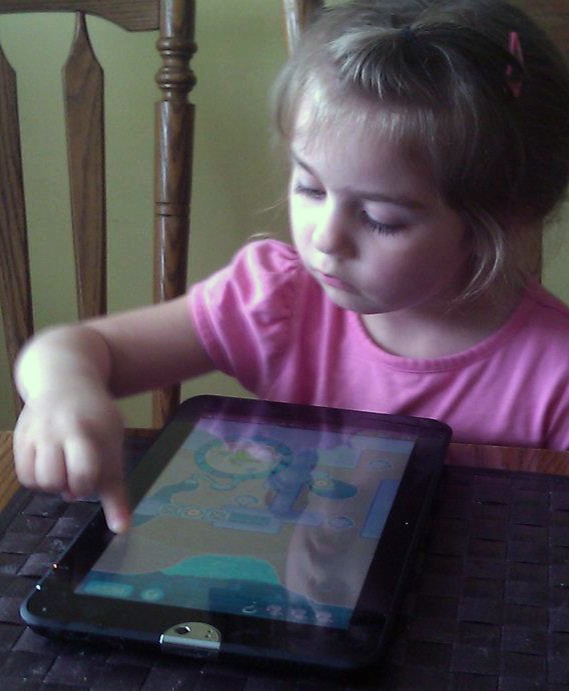 女儿玩平板的情景