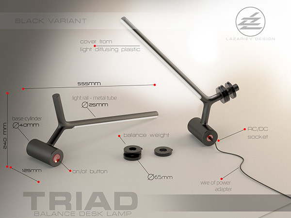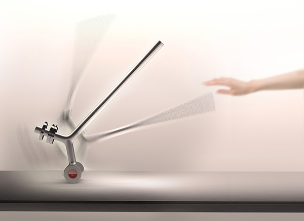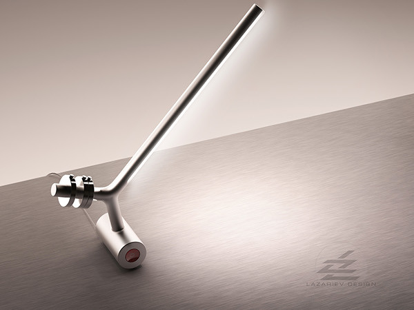 你不会在这个灯里发现任何弹簧、螺丝或铰链,但这并不代表它不够灵活。这一简单的设计有一个可滚动底座,上方有一套平衡系统,可通过移动或增加砝码以稳定在用户需要的角度。瘦长的LED灯是支架的延生,和Y型结构无缝对接。