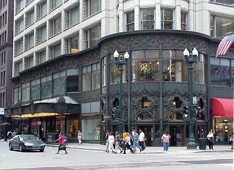 上图是路易斯·沙利文(Louis Sullivan)的Carson Pirie Scott店最初是为Schlesinger & Mayer百货公司在1899年设计的。上面楼层的简洁风格对于19世纪的建筑来说是个惊人的革新。