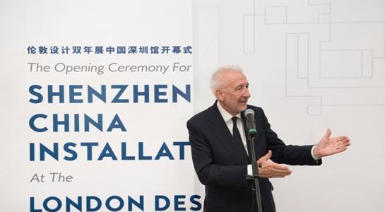 伦敦设计双年展主席约翰·索瑞尔在深圳馆开幕式上致辞